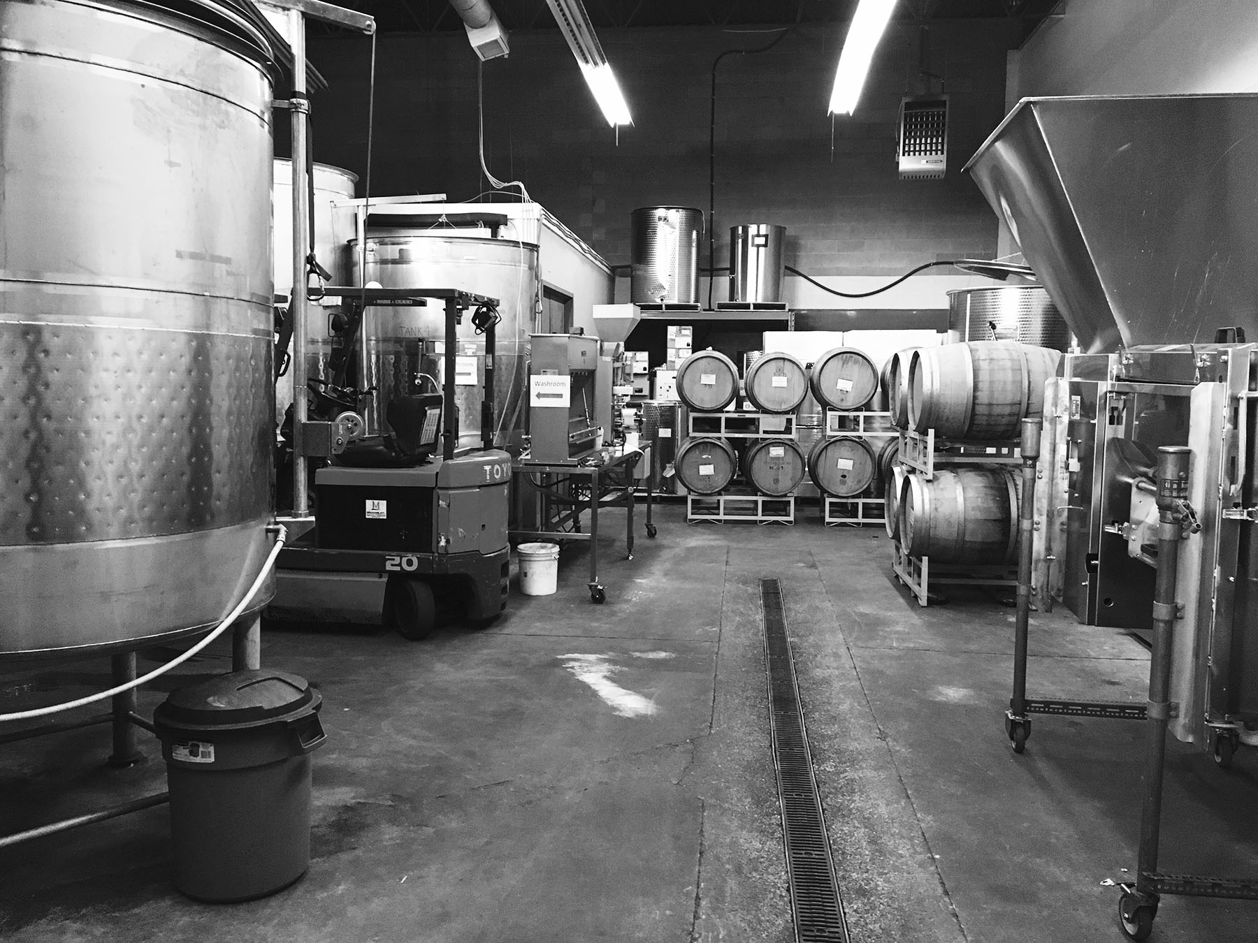 I spent the better part of a recent Sunday afternoon with Daniel from Pacific Breeze on a walking tour of the winery. We began in their tasting room where I tried their 2012 Can’t Remember White which is an unconventional, yet pleasant, blend of grapes: Sauvignon Blanc and Muscat from California and Pinot Gris from Oregon. Next we entered their production room where the winemaking takes place. Daniel explained to me that even though they don’t have their own vineyards they are constantly in touch with their growers to find out where the vines are at and, later in the growing season, where the grapes are in terms of their sugar and acid levels. Closer to harvest the wine makers are anxiously watching the weather in each region to determine when they should ask the grower to pick. For example, if they know rain is coming they may be able to pick beforehand, but if not, they know they will have to wait at least a week longer to harvest. Pacific Breeze has developed strong relationships with their growers ensuring that they buy quality fruit and that it arrives in good condition. Grapes are picked as whole bunches and all the fruit is crushed and destemmed on site at Pacific Breeze. Any stems and leaves that make it through the crushing process are removed by hand and all waste is composted.